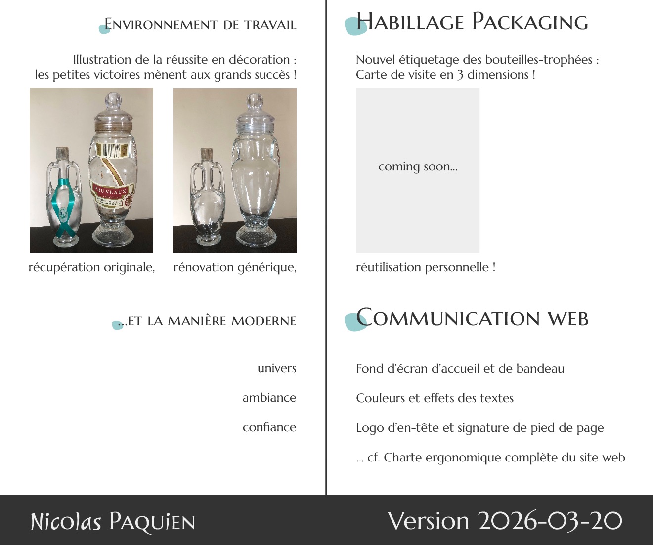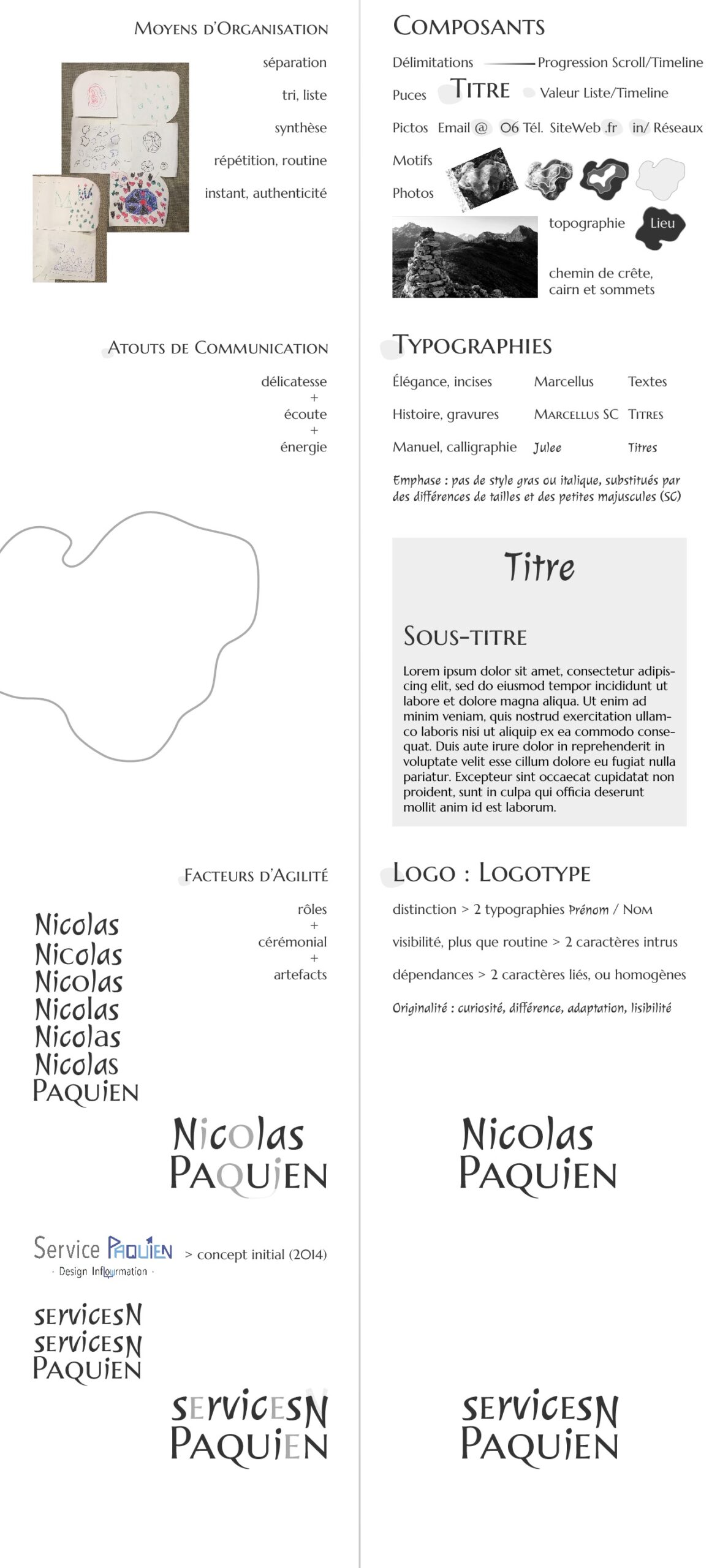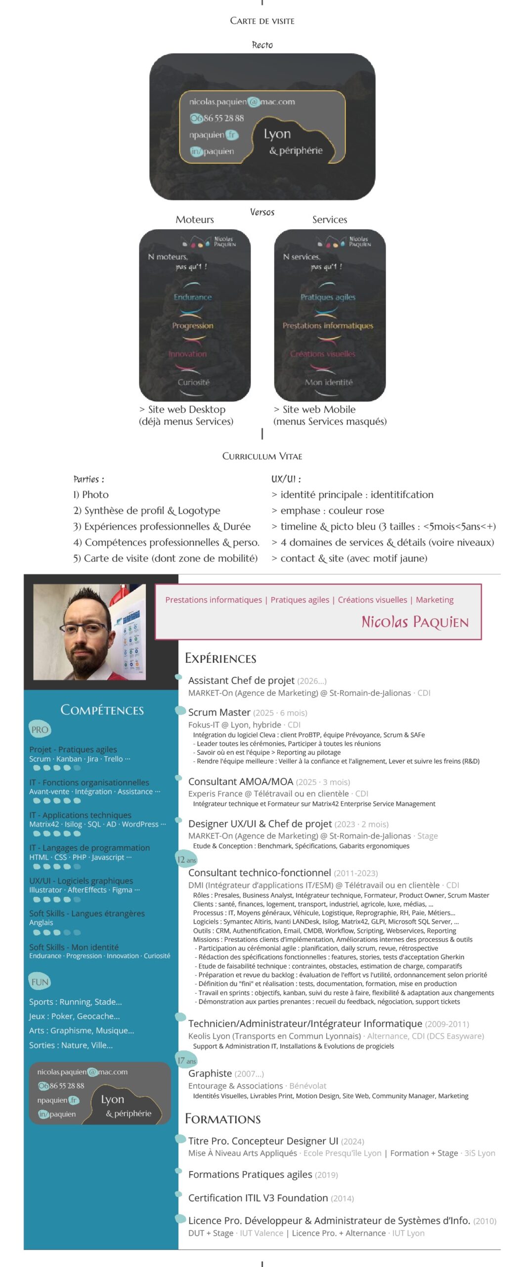 Ce site web reflète donc mon identité, aussi bien dans son contenu fruit de mes expériences, que dans sa structure même issue d’un long travail de réflexion que je vous invite à découvrir ci-dessous.